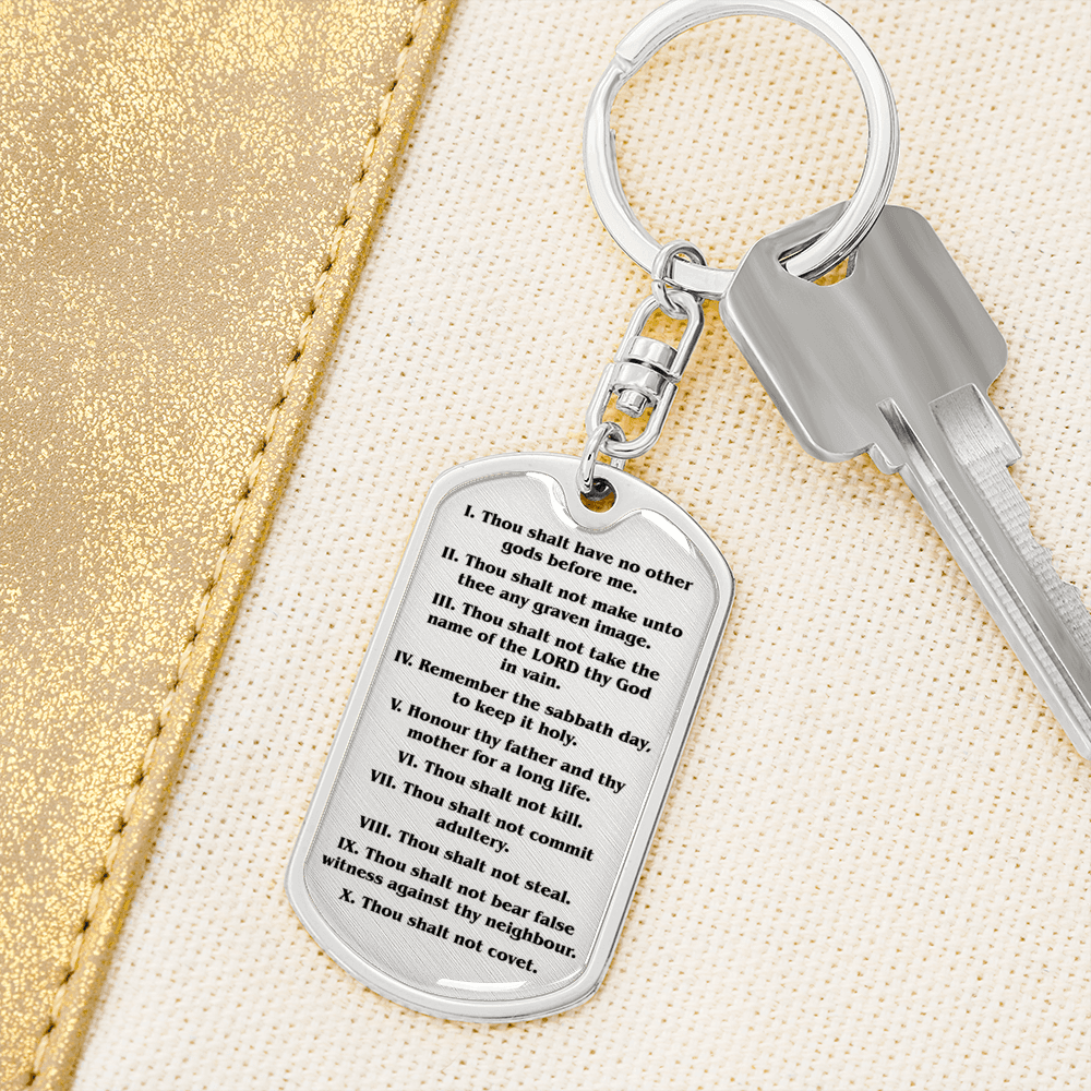 10 Commandments English Clear Swivel Keychain Dog Tag Stainless Steel or 18k Gold
