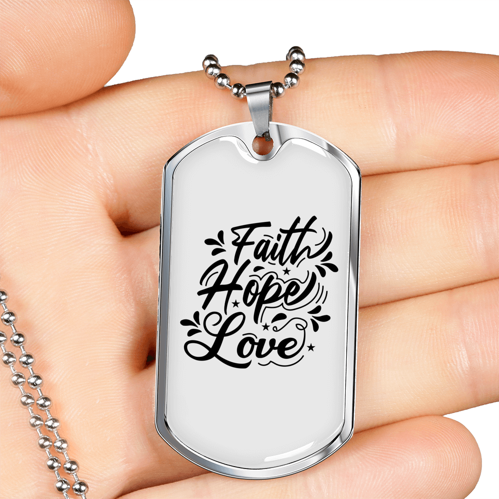 Faith Hope Love Cursive Necklace Stainless Steel or 18k Gold Dog Tag 24" Chain