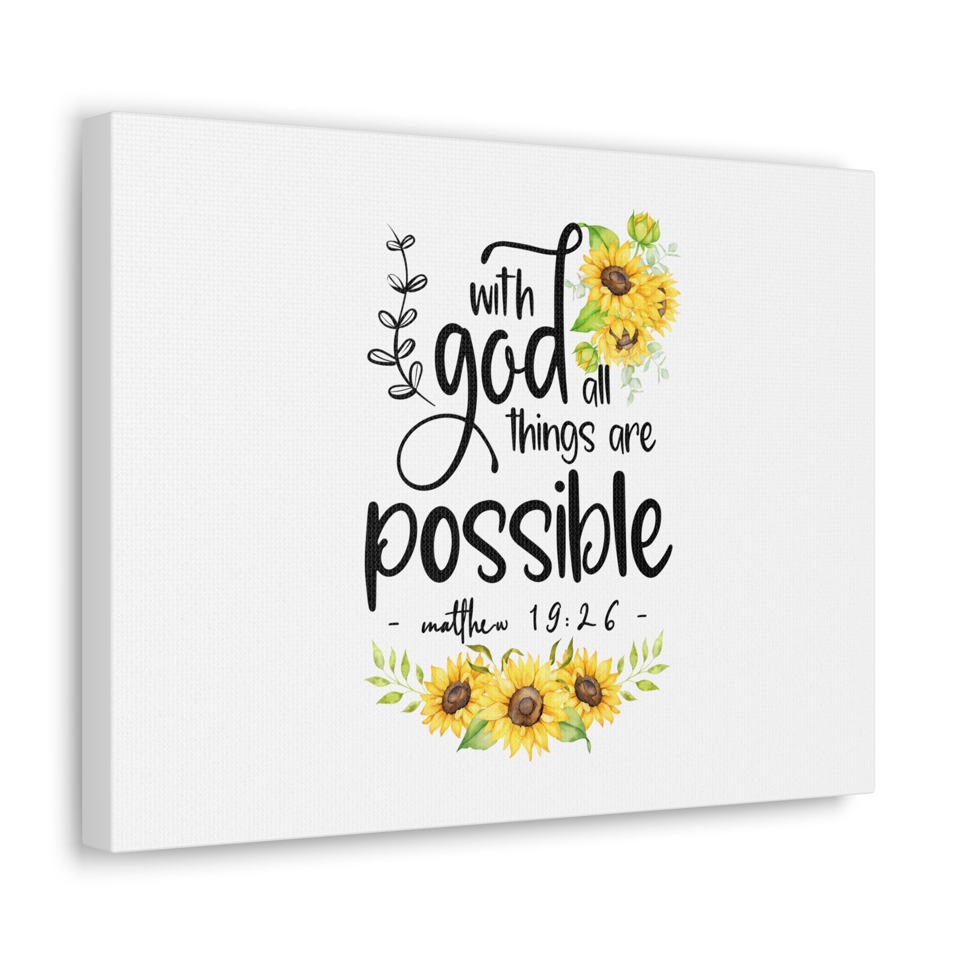 Things Are Possible Matthew 19:26 Sunflower Christian Wall Art Bible Verse Print Ready to Hang