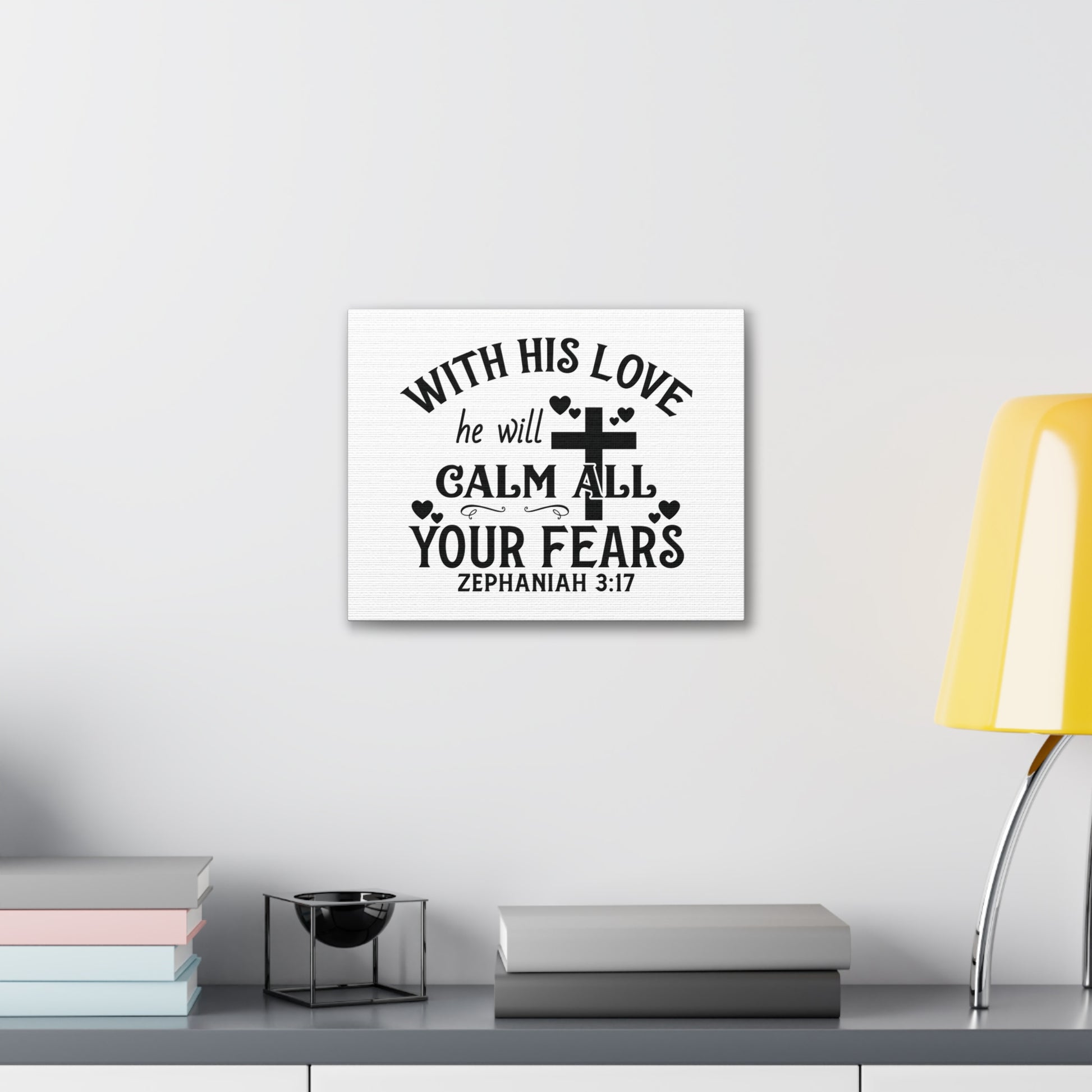 Calm All Your Fears Zephanian 3:17 Bible Verse Canvas Christian Wall Art Ready to Hang