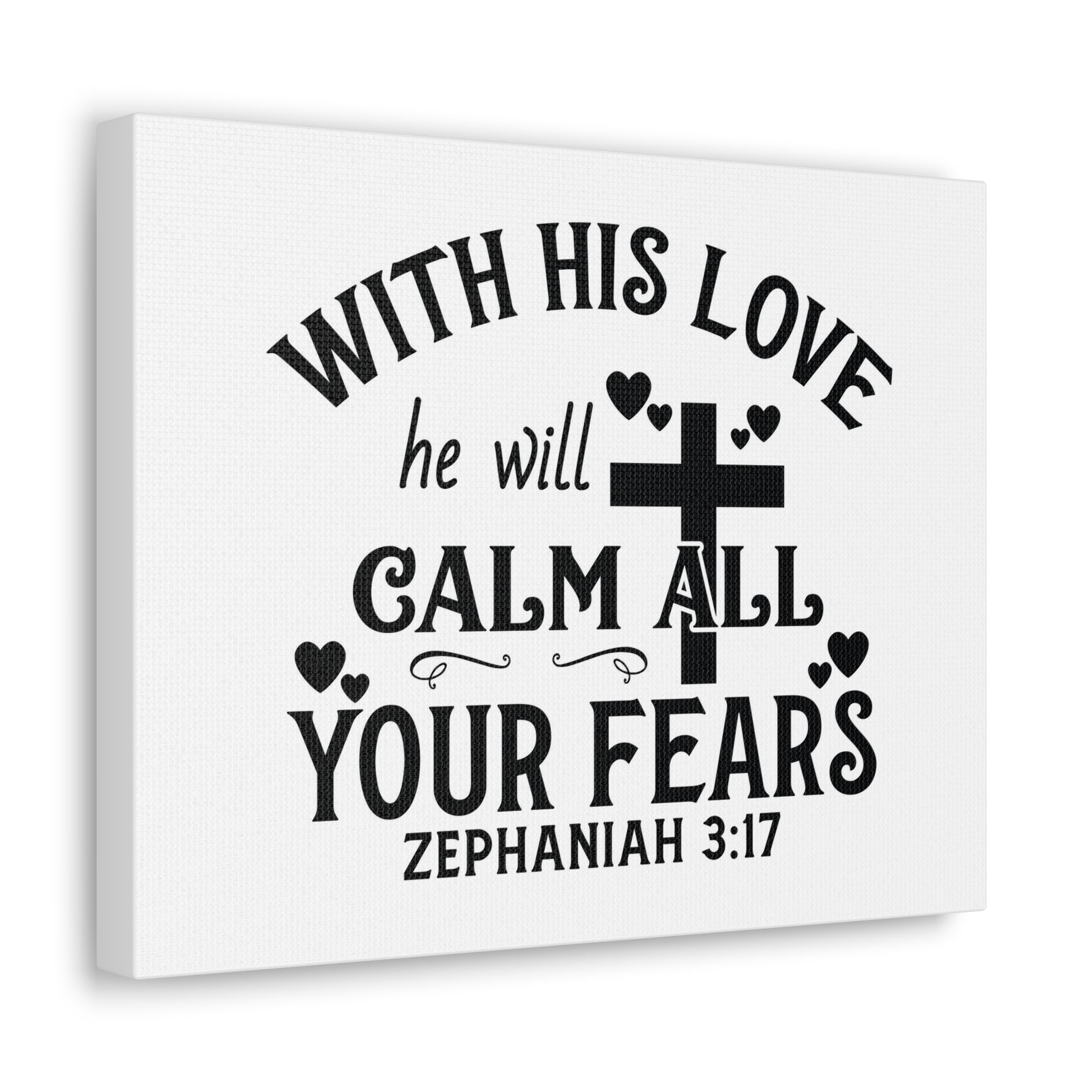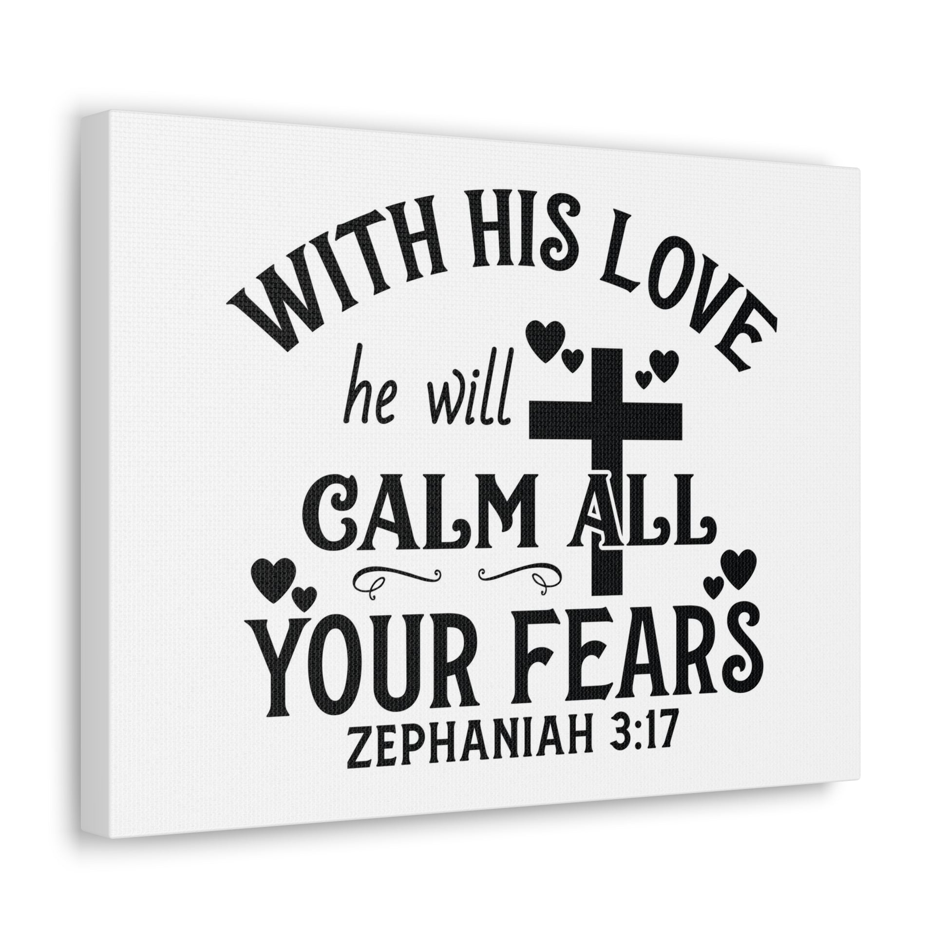 Calm All Your Fears Zephanian 3:17 Bible Verse Canvas Christian Wall Art Ready to Hang