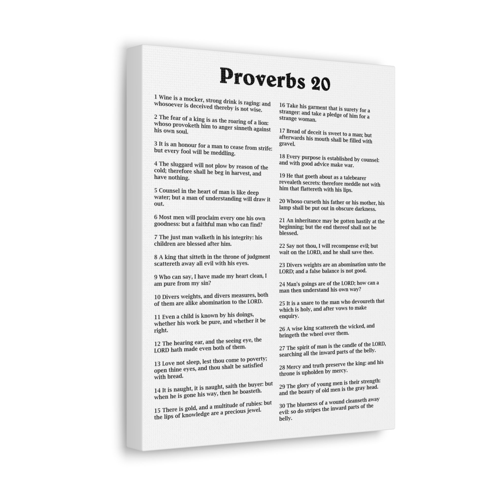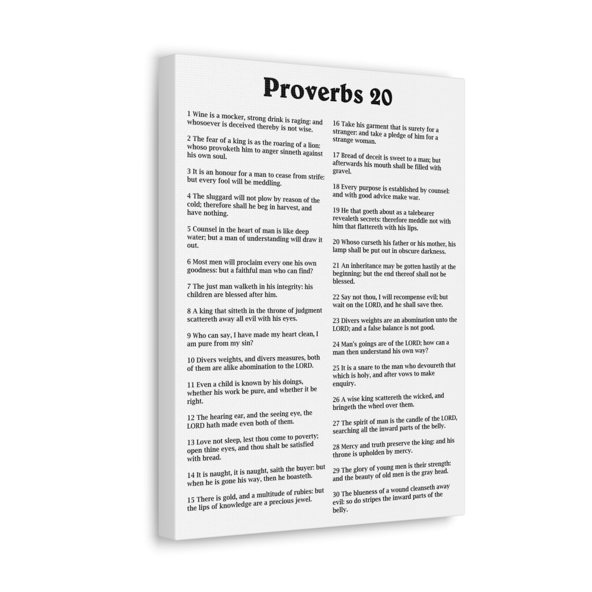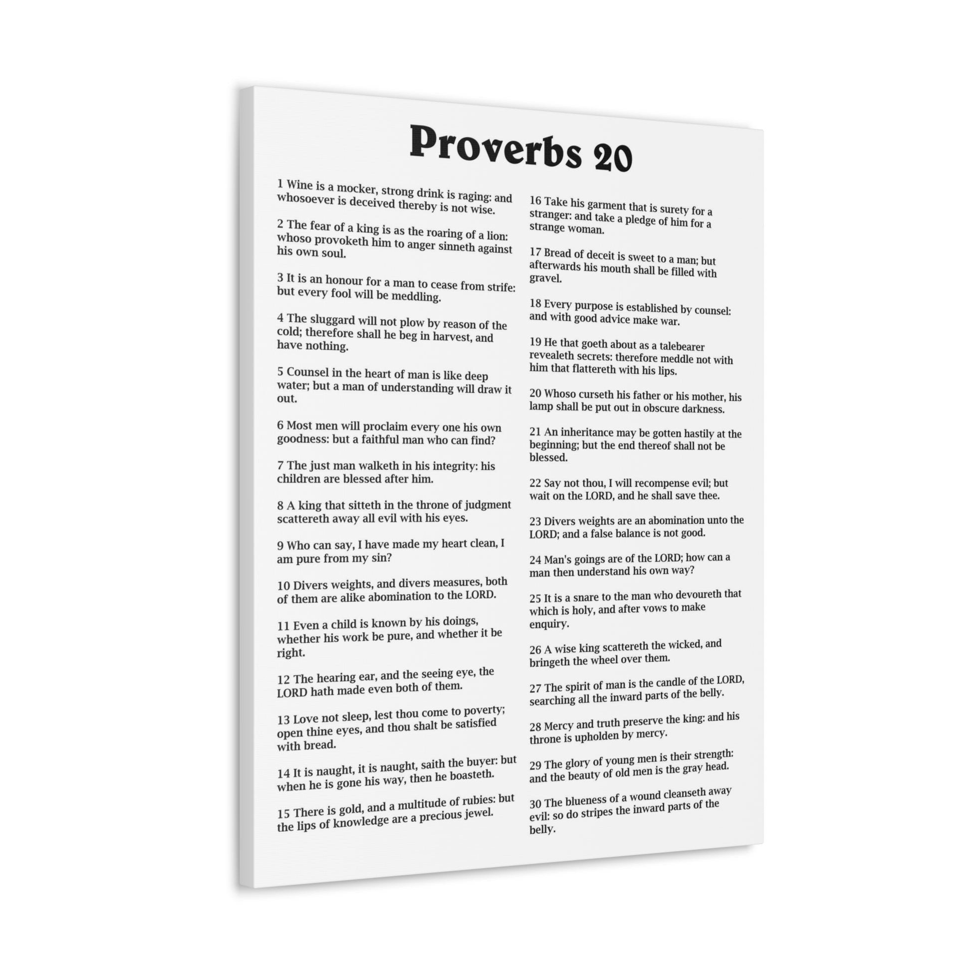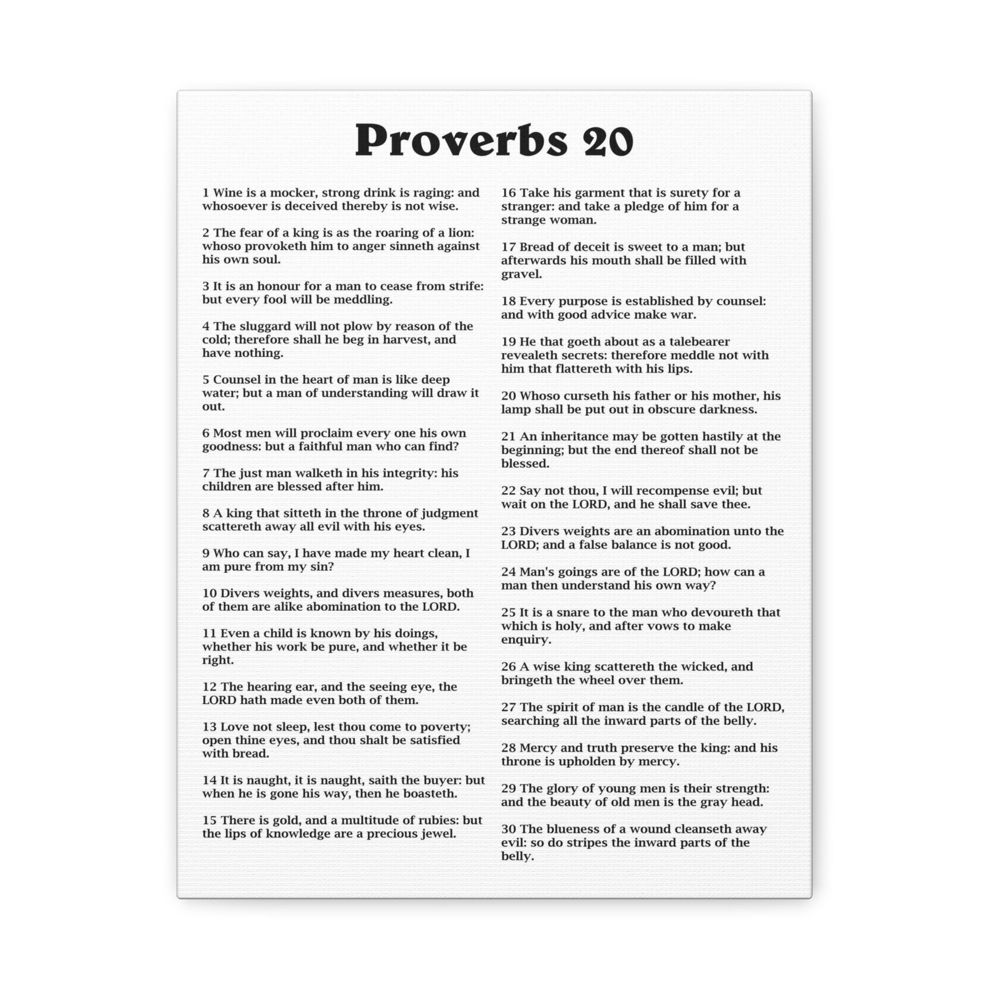 Proverbs Chapter 20 White Bible Canvas Christian Wall Art Ready to Hang Unframed