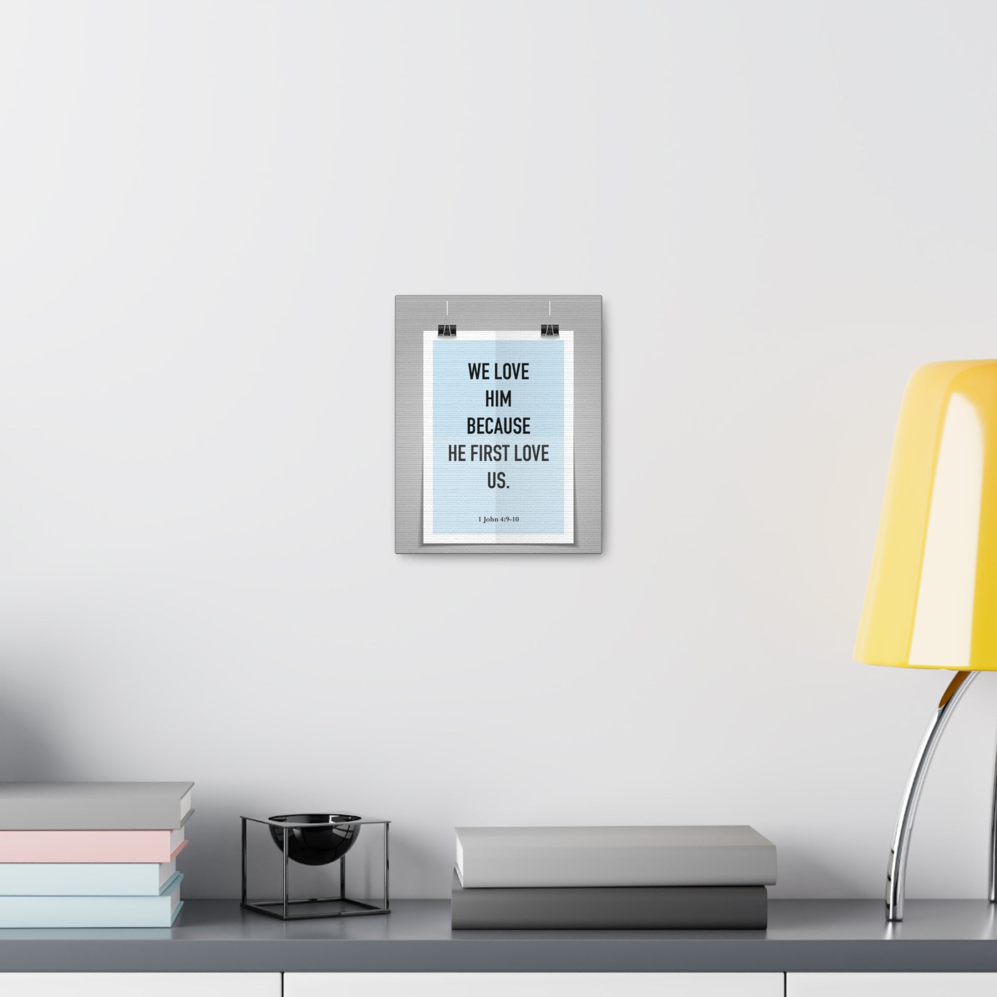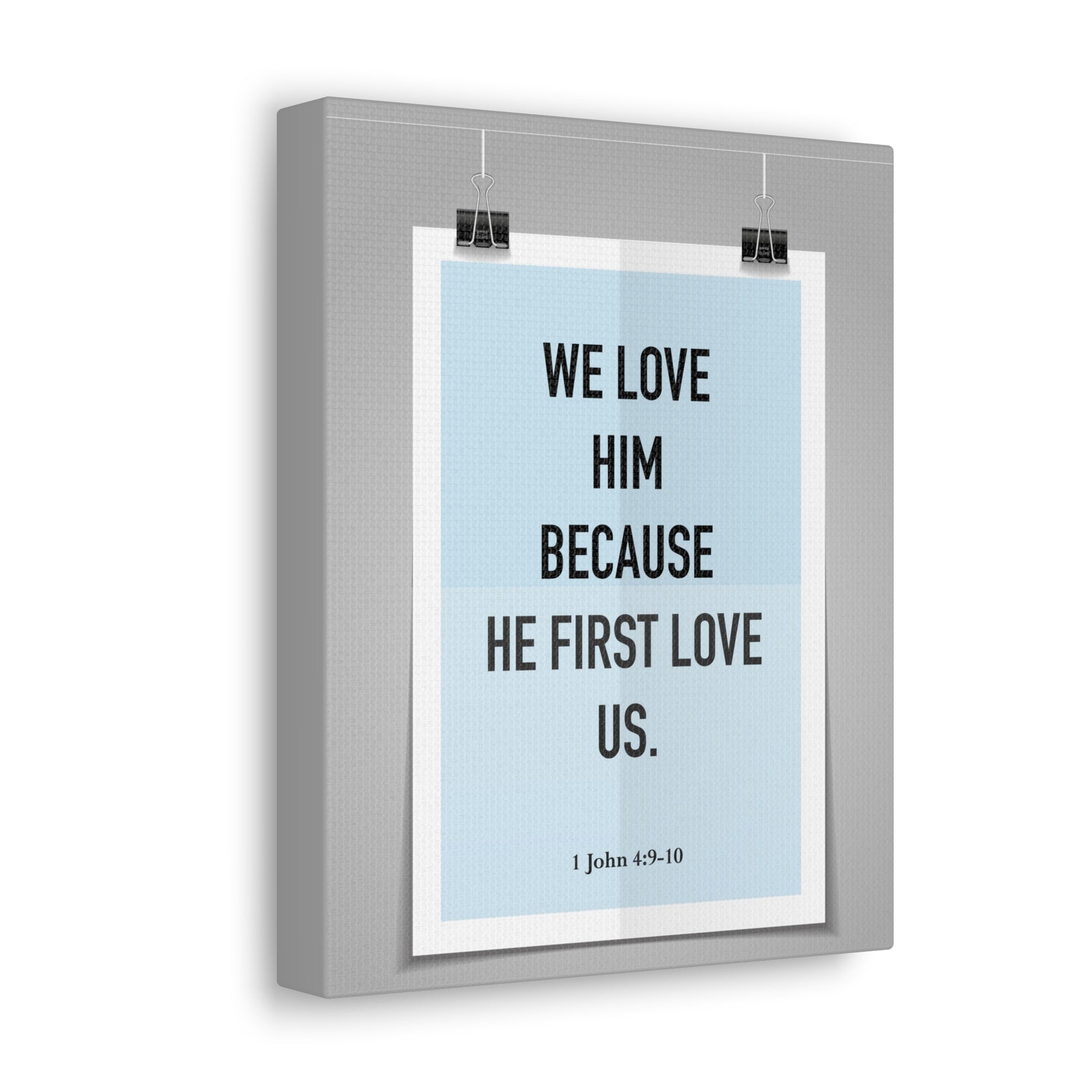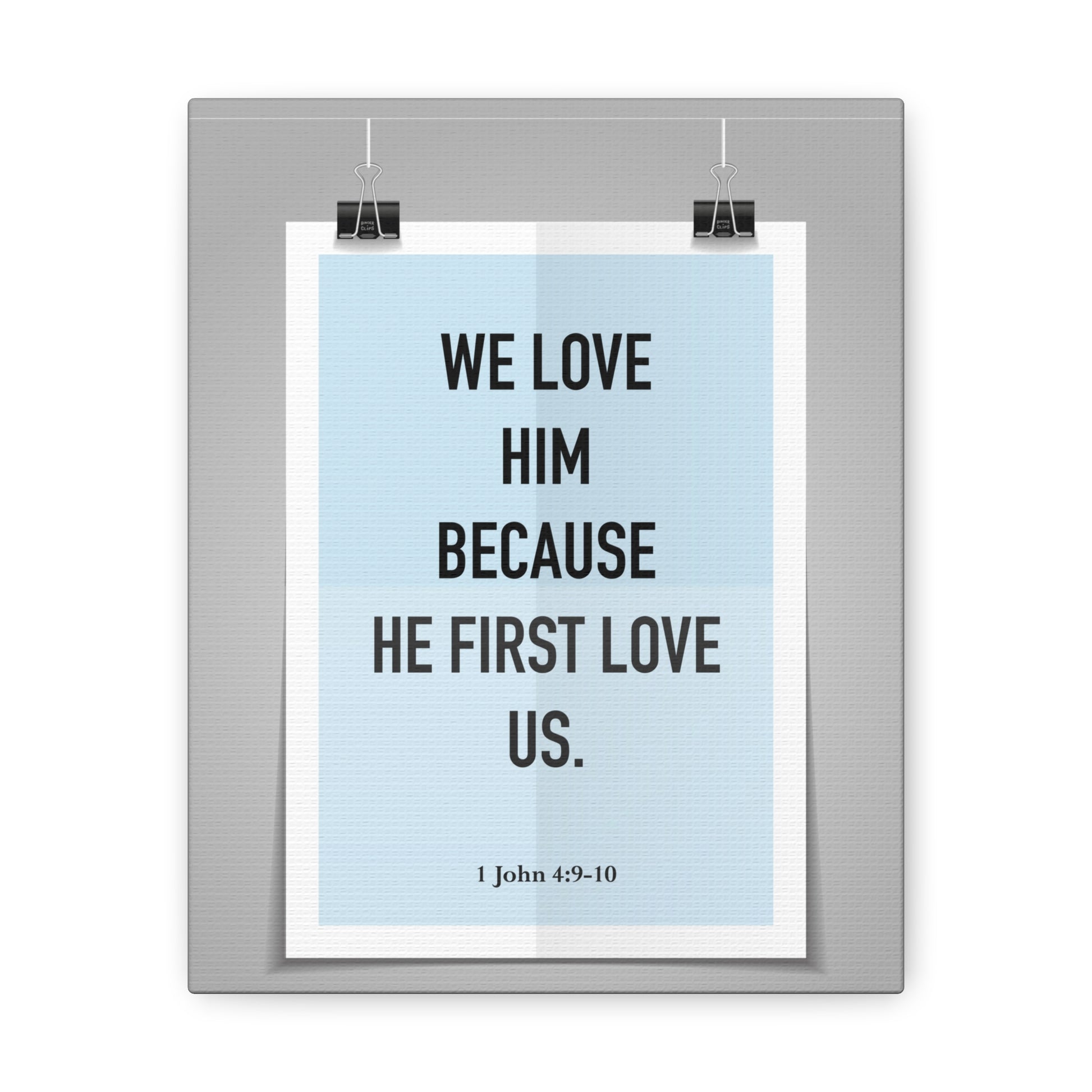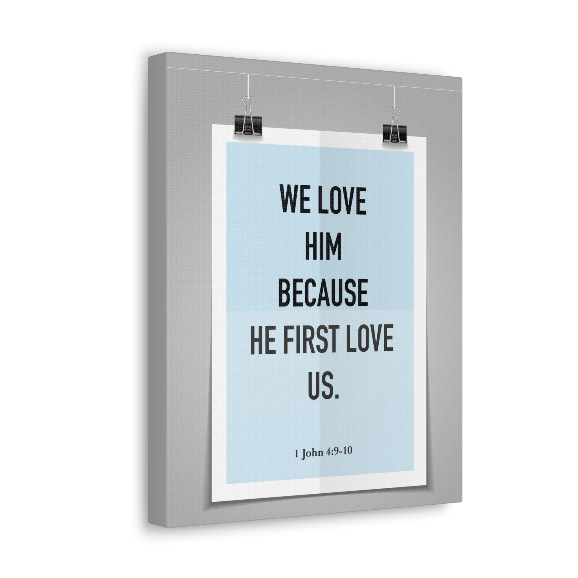 We Love Him Because He First Love Us 1 John 4:9-10 Bible Verse Canvas Christian Wall Art Ready to Hang