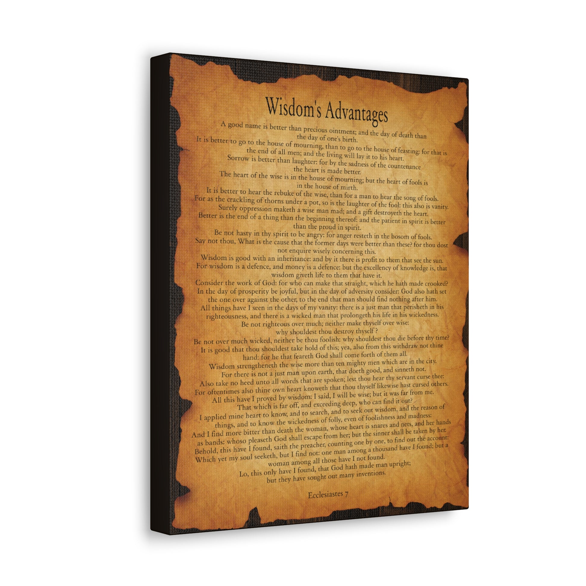 Wisdom's Advantages Ecclesiastes 7 Gold Brown Bible Verse Canvas Christian Wall Art Ready to Hang