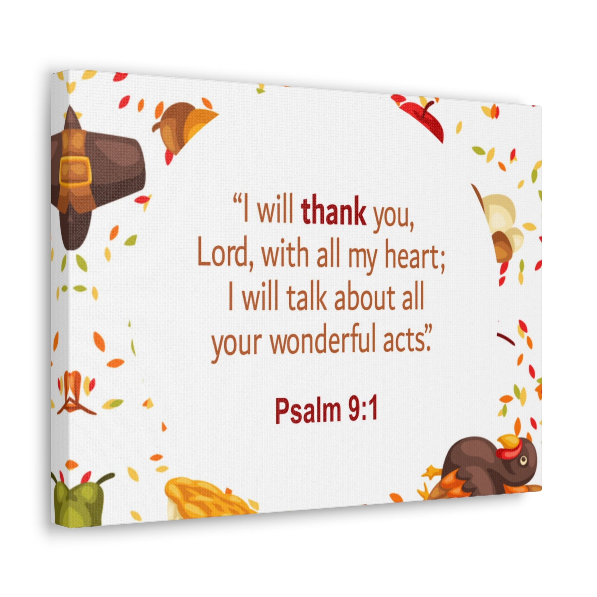 With All My Heart Psalm 9:1 Bible Verse Canvas Christian Wall Art Ready to Hang