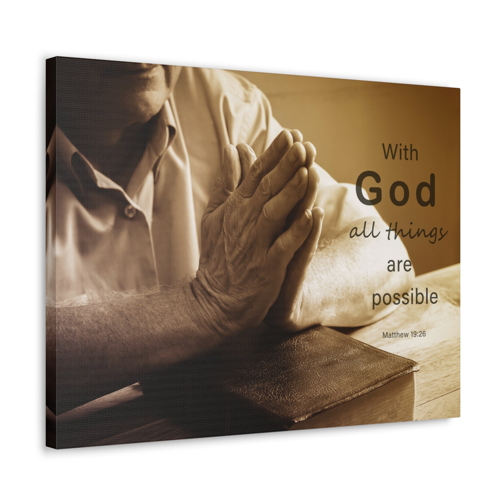 With God Matthew 19:26 Praying Hands Bible Verse Canvas Christian Wall Art Ready to Hang
