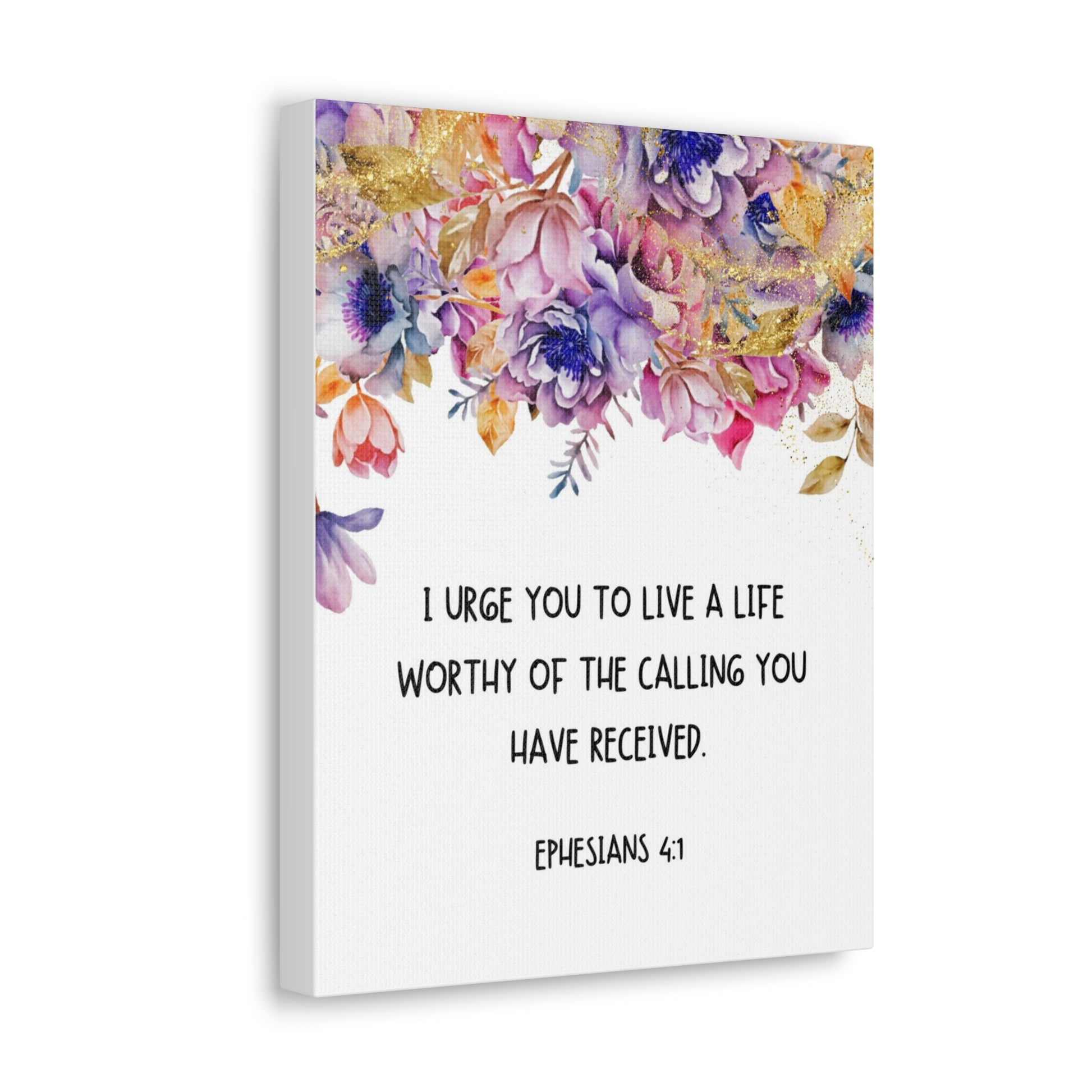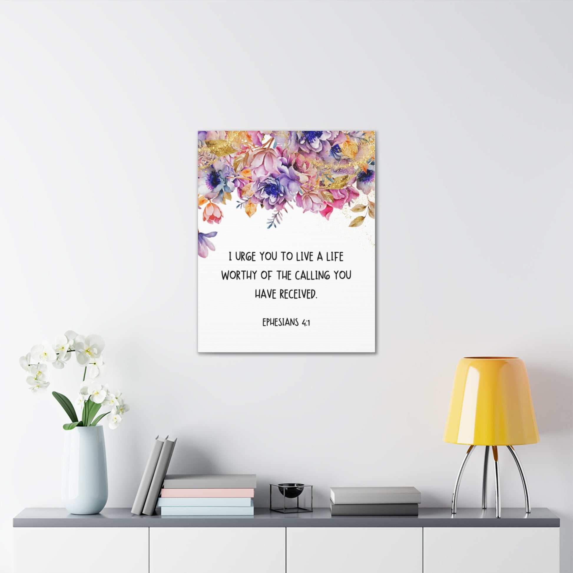 Worthy Of The Calling Ephesians 4:1 Floral Bible Verse Canvas Christian Wall Art Ready to Hang